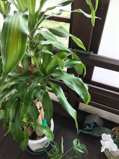 何?何?なでてあげるの?って聴いたら、さわって幹が柔らかくふわっとなったら水をあげるサインなんですって( ´∀` )