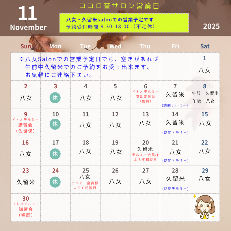 11月も皆様と一緒にワクワク♪♪楽しい時間を過ごせたら嬉しいです。